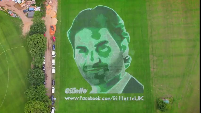 Gillette продолжает бритвенные эксперименты в наружной рекламе. После кампании в Нью-Йорке, в рамках которой креативщики побрили биллборд с изображением звезды бейсбола Дерека Джетера, производитель побрил изображение теннисиста Роджера Федерера, которое предварительно нарисовали на газоне.
